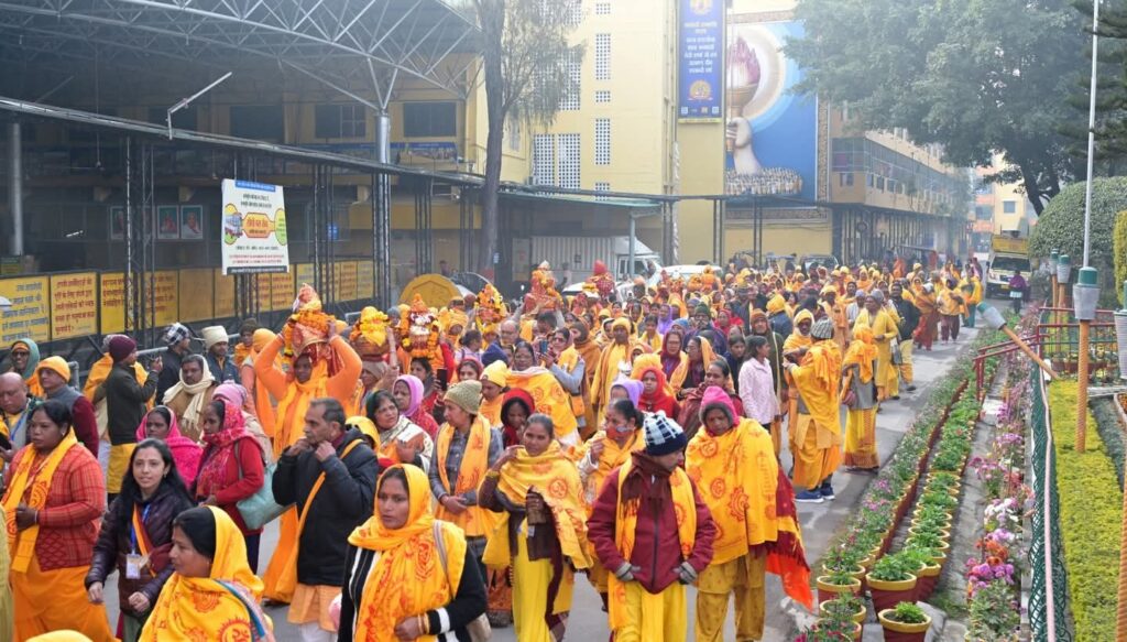 कलश पूजन के उपरांत वेद मंत्रोच्चारण और शंखनाद के साथ शोभायात्रा निकाली गई। यह शोभायात्रा गायत्री मंदिर प्रांगण से होते हुए साधना कक्ष पहुँची, जहाँ ज्योति कलशों की स्थापना की गई। कार्यक्रम का समापन आरती के साथ हुआ।